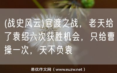 易優(yōu)作文網(wǎng)——(戰(zhàn)史風(fēng)云)官渡之戰(zhàn),老天給了袁紹六次獲勝機會,只給曹操一次,天不負(fù)袁