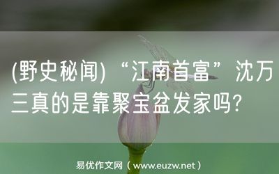 易優(yōu)作文網(wǎng)——(野史秘聞)“江南首富”沈萬三真的是靠聚寶盆發(fā)家嗎?