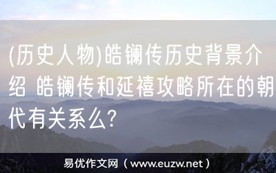 易優(yōu)作文網(wǎng)——(歷史人物)皓鑭傳歷史背景介紹 皓鑭傳和延禧攻略所在的朝代有關(guān)系么?