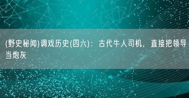 易優(yōu)作文網(wǎng)——(野史秘聞)調(diào)戲歷史(四六):古代牛人司機,直接把領(lǐng)導(dǎo)當(dāng)炮灰