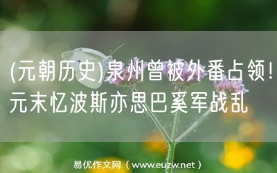 易優(yōu)作文網(wǎng)——(元朝歷史)泉州曾被外番占領(lǐng)!元末憶波斯亦思巴奚軍戰(zhàn)亂