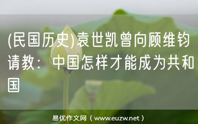 易優(yōu)作文網(wǎng)——(民國(guó)歷史)袁世凱曾向顧維鈞請(qǐng)教:中國(guó)怎樣才能成為共和國(guó)