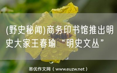 易優(yōu)作文網(wǎng)——(野史秘聞)商務印書館推出明史大家王春瑜“明史文叢”