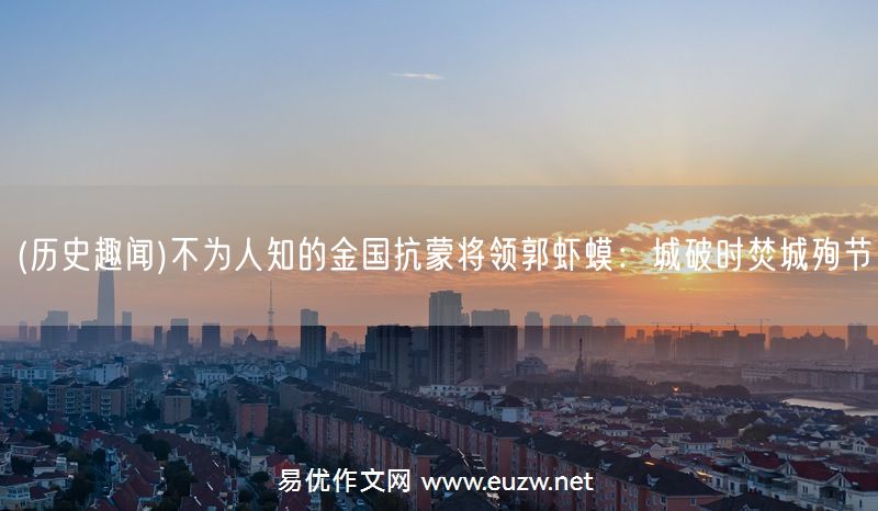 易優(yōu)作文網(wǎng)——(歷史趣聞)不為人知的金國抗蒙將領(lǐng)郭蝦?。撼瞧茣r焚城殉節(jié)