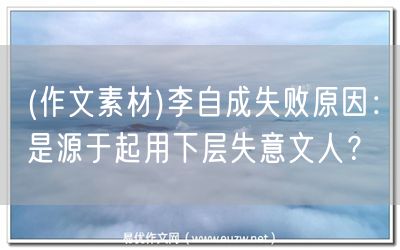 易優(yōu)作文網(wǎng)——(作文素材)李自成失敗原因:是源于起用下層失意文人?