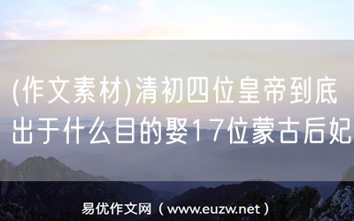 易優(yōu)作文網(wǎng)——(作文素材)清初四位皇帝到底出于什么目的娶17位蒙古后妃