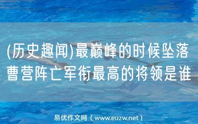 易優(yōu)作文網(wǎng)——(歷史趣聞)最巔峰的時(shí)候墜落 曹營(yíng)陣亡軍銜最高的將領(lǐng)是誰(shuí)