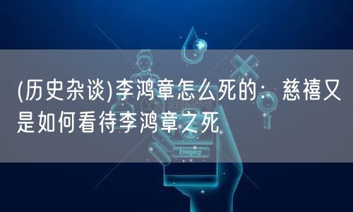 易優(yōu)作文網(wǎng)——(歷史雜談)李鴻章怎么死的:慈禧又是如何看待李鴻章之死