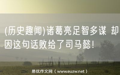 易優(yōu)作文網(wǎng)——(歷史趣聞)諸葛亮足智多謀 卻因這句話敗給了司馬懿!