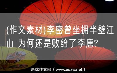 易優(yōu)作文網(wǎng)——(作文素材)李密曾坐擁半壁江山 為何還是敗給了李唐?