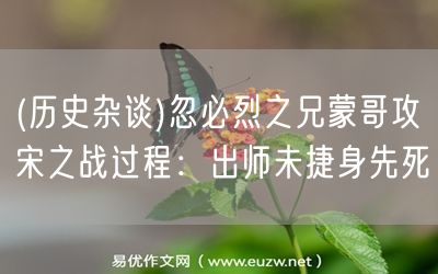 易優(yōu)作文網(wǎng)——(歷史雜談)忽必烈之兄蒙哥攻宋之戰(zhàn)過程:出師未捷身先死