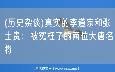 易優(yōu)作文網(wǎng)——(歷史雜談)真實(shí)的李道宗和張士貴:被冤枉了的兩位大唐名將