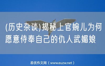 易優(yōu)作文網(wǎng)——(歷史雜談)揭秘上官婉兒為何愿意侍奉自己的仇人武媚娘