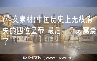 易優(yōu)作文網(wǎng)——(作文素材)中國歷史上無故消失的四位皇帝 最后一個太窩囊了