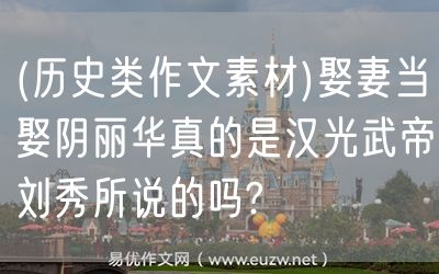 易優(yōu)作文網(wǎng)——(歷史類作文素材)娶妻當(dāng)娶陰麗華真的是漢光武帝劉秀所說的嗎?