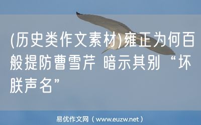 易優(yōu)作文網(wǎng)——(歷史類作文素材)雍正為何百般提防曹雪芹 暗示其別“壞朕聲名”