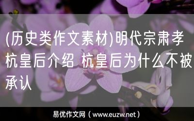 易優(yōu)作文網(wǎng)——(歷史類作文素材)明代宗肅孝杭皇后介紹 杭皇后為什么不被承認(rèn)