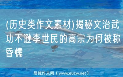 易優(yōu)作文網——(歷史類作文素材)揭秘文治武功不遜李世民的高宗為何被稱昏懦