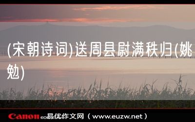 (宋朝詩(shī)詞)送周縣尉滿(mǎn)秩歸(姚勉)由易優(yōu)作文(易優(yōu)悅讀)為大家精心整理發(fā)布,學(xué)作文,學(xué)閱讀,提升語(yǔ)文閱讀寫(xiě)作能力,就來(lái)易優(yōu)悅讀。作文培訓(xùn),閱讀培訓(xùn),易優(yōu)悅讀助力每個(gè)孩子成為語(yǔ)文學(xué)霸。
