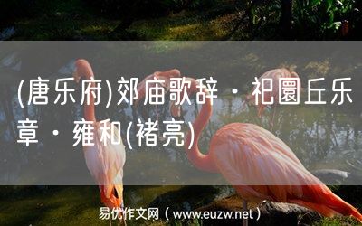 (唐樂府)郊廟歌辭·祀圜丘樂章·雍和(褚亮)由易優(yōu)作文(易優(yōu)悅讀)為大家精心整理發(fā)布,學(xué)作文,學(xué)閱讀,提升語文閱讀寫作能力,就來易優(yōu)悅讀。作文培訓(xùn),閱讀培訓(xùn),易優(yōu)悅讀助力每個孩子成為語文學(xué)霸。