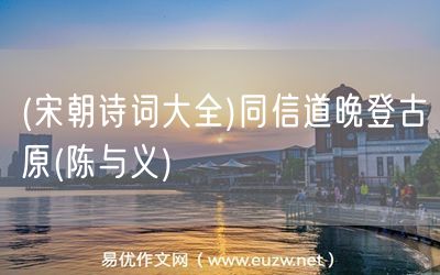 (宋朝詩詞大全)同信道晚登古原(陳與義)由易優(yōu)作文(易優(yōu)悅讀)為大家精心整理發(fā)布,學(xué)作文,學(xué)閱讀,提升語文閱讀寫作能力,就來易優(yōu)悅讀。作文培訓(xùn),閱讀培訓(xùn),易優(yōu)悅讀助力每個孩子成為語文學(xué)霸。
