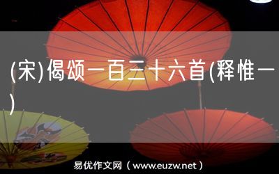 (宋)偈頌一百三十六首(釋惟一)由易優(yōu)作文(易優(yōu)悅讀)為大家精心整理發(fā)布,學(xué)作文,學(xué)閱讀,提升語文閱讀寫作能力,就來易優(yōu)悅讀。作文培訓(xùn),閱讀培訓(xùn),易優(yōu)悅讀助力每個孩子成為語文學(xué)霸。