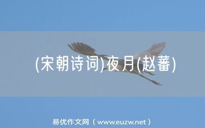 (宋朝詩(shī)詞)夜月(趙蕃)由易優(yōu)作文(易優(yōu)悅讀)為大家精心整理發(fā)布,學(xué)作文,學(xué)閱讀,提升語(yǔ)文閱讀寫(xiě)作能力,就來(lái)易優(yōu)悅讀。作文培訓(xùn),閱讀培訓(xùn),易優(yōu)悅讀助力每個(gè)孩子成為語(yǔ)文學(xué)霸。
