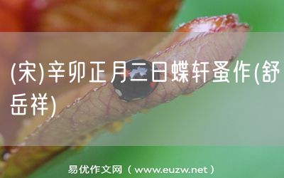 (宋)辛卯正月二日蝶軒蚤作(舒岳祥)由易優(yōu)作文(易優(yōu)悅讀)為大家精心整理發(fā)布,學(xué)作文,學(xué)閱讀,提升語(yǔ)文閱讀寫作能力,就來易優(yōu)悅讀。作文培訓(xùn),閱讀培訓(xùn),易優(yōu)悅讀助力每個(gè)孩子成為語(yǔ)文學(xué)霸。