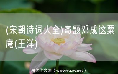 易優(yōu)作文網(wǎng)——(宋朝詩(shī)詞大全)寄題鄧成這粟庵(王洋)
