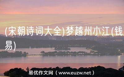 (宋朝詩(shī)詞大全)夢(mèng)越州小江(錢(qián)易)由易優(yōu)作文(易優(yōu)悅讀)為大家精心整理發(fā)布,學(xué)作文,學(xué)閱讀,提升語(yǔ)文閱讀寫(xiě)作能力,就來(lái)易優(yōu)悅讀。作文培訓(xùn),閱讀培訓(xùn),易優(yōu)悅讀助力每個(gè)孩子成為語(yǔ)文學(xué)霸。