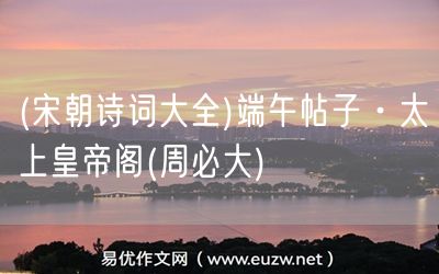 (宋朝詩詞大全)端午帖子·太上皇帝閣(周必大)由易優(yōu)作文(易優(yōu)悅讀)為大家精心整理發(fā)布,學(xué)作文,學(xué)閱讀,提升語文閱讀寫作能力,就來易優(yōu)悅讀。作文培訓(xùn),閱讀培訓(xùn),易優(yōu)悅讀助力每個(gè)孩子成為語文學(xué)霸。
