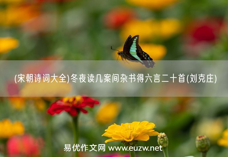 (宋朝詩詞大全)冬夜讀幾案間雜書得六言二十首(劉克莊)由易優(yōu)作文(易優(yōu)悅讀)為大家精心整理發(fā)布,學(xué)作文,學(xué)閱讀,提升語文閱讀寫作能力,就來易優(yōu)悅讀。作文培訓(xùn),閱讀培訓(xùn),易優(yōu)悅讀助力每個(gè)孩子成為語文學(xué)霸。