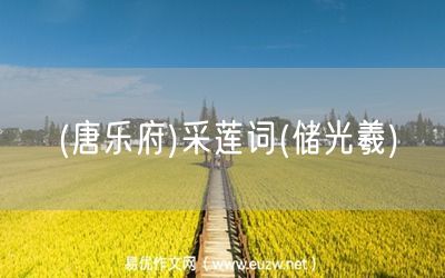 (唐樂府)采蓮詞(儲光羲)由易優(yōu)作文(易優(yōu)悅讀)為大家精心整理發(fā)布,學(xué)作文,學(xué)閱讀,提升語文閱讀寫作能力,就來易優(yōu)悅讀。作文培訓(xùn),閱讀培訓(xùn),易優(yōu)悅讀助力每個孩子成為語文學(xué)霸。
