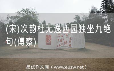 (宋)次韻杜無逸西園獨(dú)坐九絕句(傅察)由易優(yōu)作文(易優(yōu)悅讀)為大家精心整理發(fā)布,學(xué)作文,學(xué)閱讀,提升語文閱讀寫作能力,就來易優(yōu)悅讀。作文培訓(xùn),閱讀培訓(xùn),易優(yōu)悅讀助力每個孩子成為語文學(xué)霸。