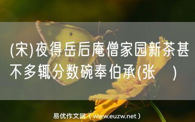 易優(yōu)作文網(wǎng)——(宋)夜得岳后庵僧家園新茶甚不多輒分?jǐn)?shù)碗奉伯承(張栻)