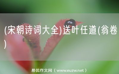 (宋朝詩(shī)詞大全)送葉任道(翁卷)由易優(yōu)作文(易優(yōu)悅讀)為大家精心整理發(fā)布,學(xué)作文,學(xué)閱讀,提升語(yǔ)文閱讀寫(xiě)作能力,就來(lái)易優(yōu)悅讀。作文培訓(xùn),閱讀培訓(xùn),易優(yōu)悅讀助力每個(gè)孩子成為語(yǔ)文學(xué)霸。 蘇州吳中區(qū)小學(xué)生語(yǔ)文提優(yōu),蘇州名校沖刺培訓(xùn),(Tel:181-1815-9898)20余年輔導(dǎo)經(jīng)驗(yàn),每年都有數(shù)十個(gè)成功案例。