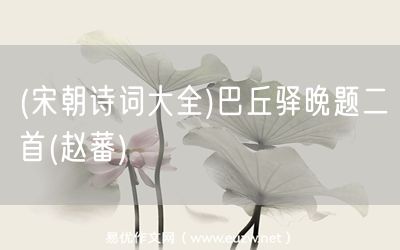 易優(yōu)作文網(wǎng)——(宋朝詩(shī)詞大全)巴丘驛晚題二首(趙蕃)