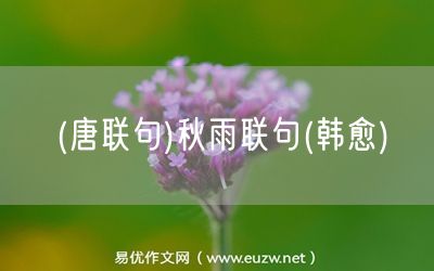 (唐聯(lián)句)秋雨聯(lián)句(韓愈)由易優(yōu)作文(易優(yōu)悅讀)為大家精心整理發(fā)布,學(xué)作文,學(xué)閱讀,提升語文閱讀寫作能力,就來易優(yōu)悅讀。作文培訓(xùn),閱讀培訓(xùn),易優(yōu)悅讀助力每個孩子成為語文學(xué)霸。