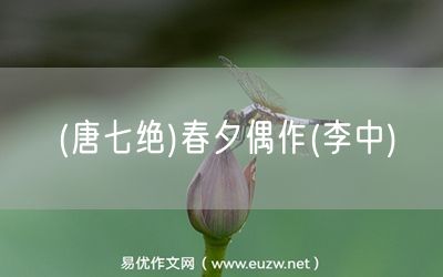 (唐七絕)春夕偶作(李中)由易優(yōu)作文(易優(yōu)悅讀)為大家精心整理發(fā)布,學(xué)作文,學(xué)閱讀,提升語文閱讀寫作能力,就來易優(yōu)悅讀。作文培訓(xùn),閱讀培訓(xùn),易優(yōu)悅讀助力每個孩子成為語文學(xué)霸。