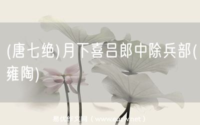 (唐七絕)月下喜呂郎中除兵部(雍陶)由易優(yōu)作文(易優(yōu)悅讀)為大家精心整理發(fā)布,學(xué)作文,學(xué)閱讀,提升語文閱讀寫作能力,就來易優(yōu)悅讀。作文培訓(xùn),閱讀培訓(xùn),易優(yōu)悅讀助力每個(gè)孩子成為語文學(xué)霸。