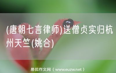 (唐朝七言律師)送僧貞實(shí)歸杭州天竺(姚合)由易優(yōu)作文(易優(yōu)悅讀)為大家精心整理發(fā)布,學(xué)作文,學(xué)閱讀,提升語(yǔ)文閱讀寫(xiě)作能力,就來(lái)易優(yōu)悅讀。作文培訓(xùn),閱讀培訓(xùn),易優(yōu)悅讀助力每個(gè)孩子成為語(yǔ)文學(xué)霸。