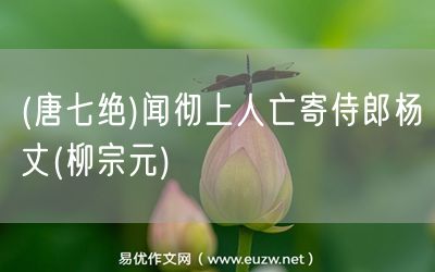 (唐七絕)聞徹上人亡寄侍郎楊丈(柳宗元)由易優(yōu)作文(易優(yōu)悅讀)為大家精心整理發(fā)布,學(xué)作文,學(xué)閱讀,提升語文閱讀寫作能力,就來易優(yōu)悅讀。作文培訓(xùn),閱讀培訓(xùn),易優(yōu)悅讀助力每個孩子成為語文學(xué)霸。