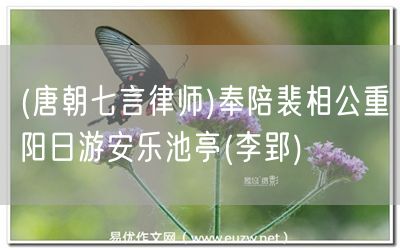 (唐朝七言律師)奉陪裴相公重陽(yáng)日游安樂(lè)池亭(李郢)由易優(yōu)作文(易優(yōu)悅讀)為大家精心整理發(fā)布,學(xué)作文,學(xué)閱讀,提升語(yǔ)文閱讀寫(xiě)作能力,就來(lái)易優(yōu)悅讀。作文培訓(xùn),閱讀培訓(xùn),易優(yōu)悅讀助力每個(gè)孩子成為語(yǔ)文學(xué)霸。