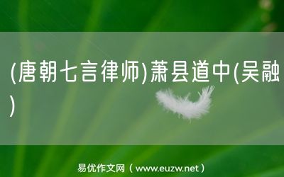(唐朝七言律師)蕭縣道中(吳融)由易優(yōu)作文(易優(yōu)悅讀)為大家精心整理發(fā)布,學(xué)作文,學(xué)閱讀,提升語(yǔ)文閱讀寫(xiě)作能力,就來(lái)易優(yōu)悅讀。作文培訓(xùn),閱讀培訓(xùn),易優(yōu)悅讀助力每個(gè)孩子成為語(yǔ)文學(xué)霸。