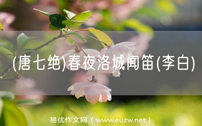 (唐七絕)春夜洛城聞笛(李白)由易優(yōu)作文(易優(yōu)悅讀)為大家精心整理發(fā)布,學(xué)作文,學(xué)閱讀,提升語文閱讀寫作能力,就來易優(yōu)悅讀。作文培訓(xùn),閱讀培訓(xùn),易優(yōu)悅讀助力每個孩子成為語文學(xué)霸。