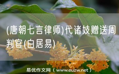 (唐朝七言律師)代諸妓贈(zèng)送周判官(白居易)由易優(yōu)作文(易優(yōu)悅讀)為大家精心整理發(fā)布,學(xué)作文,學(xué)閱讀,提升語文閱讀寫作能力,就來易優(yōu)悅讀。作文培訓(xùn),閱讀培訓(xùn),易優(yōu)悅讀助力每個(gè)孩子成為語文學(xué)霸。