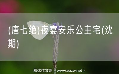 (唐七絕)夜宴安樂(lè)公主宅(沈佺期)由易優(yōu)作文(易優(yōu)悅讀)為大家精心整理發(fā)布,學(xué)作文,學(xué)閱讀,提升語(yǔ)文閱讀寫(xiě)作能力,就來(lái)易優(yōu)悅讀。作文培訓(xùn),閱讀培訓(xùn),易優(yōu)悅讀助力每個(gè)孩子成為語(yǔ)文學(xué)霸。