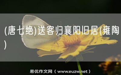 (唐七絕)送客歸襄陽舊居(雍陶)由易優(yōu)作文(易優(yōu)悅讀)為大家精心整理發(fā)布,學作文,學閱讀,提升語文閱讀寫作能力,就來易優(yōu)悅讀。
