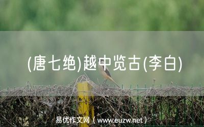 (唐七絕)越中覽古(李白)由易優(yōu)作文(易優(yōu)悅讀)為大家精心整理發(fā)布,學作文,學閱讀,提升語文閱讀寫作能力,就來易優(yōu)悅讀。作文培訓,閱讀培訓,易優(yōu)悅讀助力每個孩子成為語文學霸。