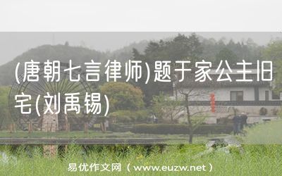易優(yōu)作文網——(唐朝七言律師)題于家公主舊宅(劉禹錫)